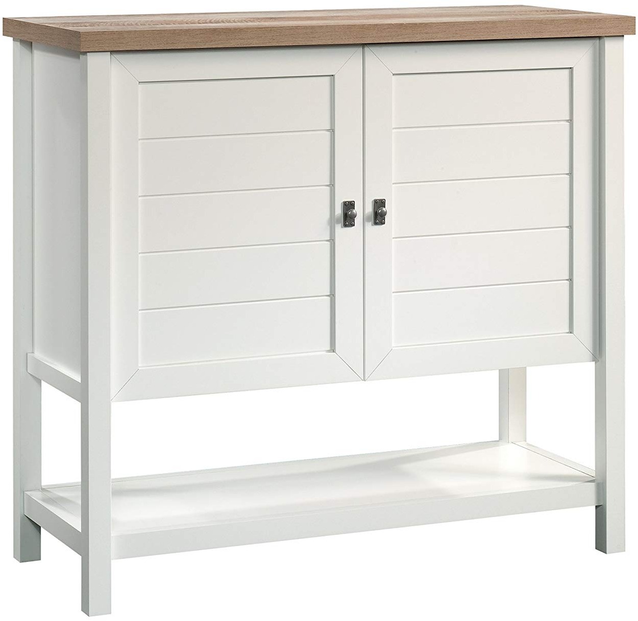 Need a solution for your clutter and chaos? Check out this storage cabinet from the Cottage Road collection. This bright and airy cabinet features hidden storage behind each of the doors along with two adjustable shelves for enhanced storage possibilities. It also features a lower open shelf for additional storage! Finished on all sides in Soft White with a Lintel Oak accent, this stylish cabinet will take your home from mess to yes in no time.