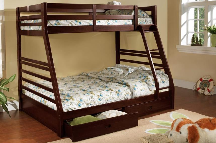 A pair of drawers under the bunk bed helps to maximize storage space.