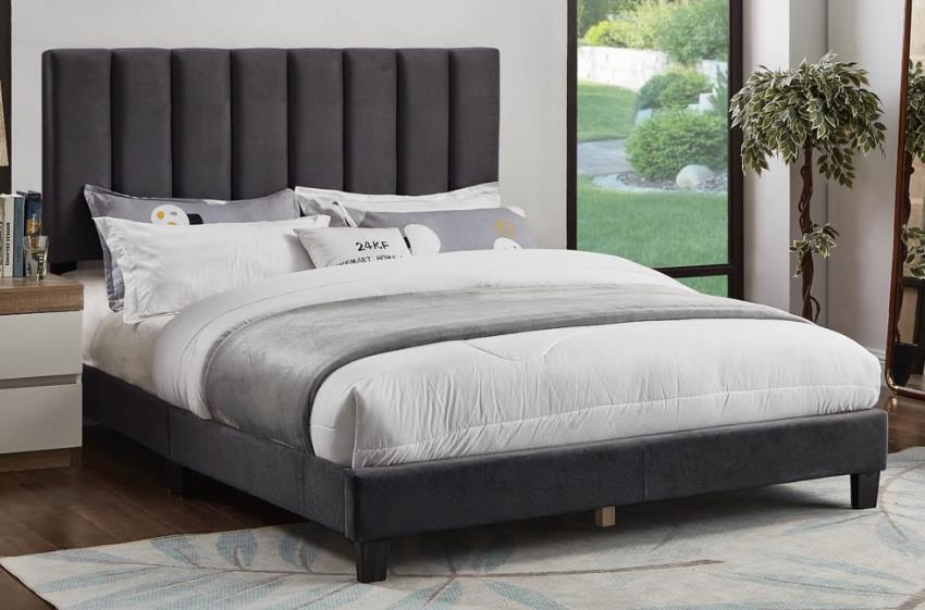 Create the perfect, contemporary styled sleeping space with this adjustable headboard and bed. Deep, vertical channel tufting offers a clean look, while your choice of charcoal or grey velvet fabric ensures your bed will match most design concepts.Read More