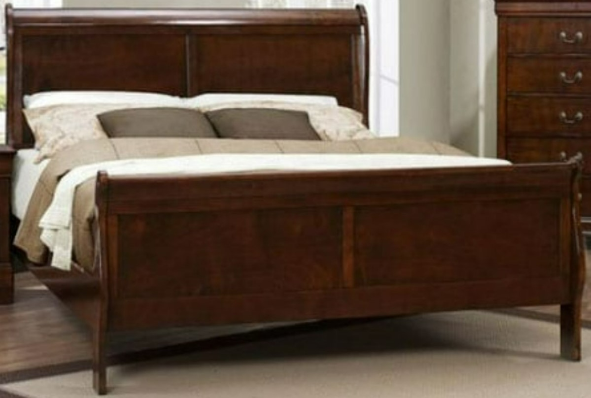 This Louis Philippe Bed is beautifully crafted to create a rich and gorgeous bedroom. The gentle curving of this sleigh bed compliments the wood construction. Shown in a semi-gloss dark cherry finish, this Louis Philippe Bed is a splendid piece that brings both elegance and charm to your bedroom.Read More