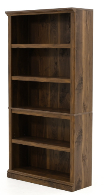 There is no such thing as a home with too much storage. Create the additional storage space your home needs without having to sacrifice on the style that you love with this 5-shelf bookcase from the Sauder Select collection. This tall bookcase features five spacious shelves that provide you with the room you need to store a variety of different items like books, fashion magazines and baskets. These large shelves also make a great place to display home décor items like decorative plants, your array of collectibles and pottery. This living room bookcase includes three adjustable shelves that can move to different heights to create flexible storage and display for items of all shapes and sizes. Its charming good looks and versatile design make this bookcase a great fit for any room. Finished in Grand Walnut, this handsome living room bookcase is just what you’ve been looking for and so much more.