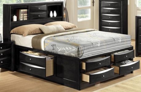 Bed includes 4 footboard drawers, 2 side drawers, and 2 headboard drawers