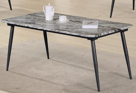 The faux marble table top includes a high gloss finish, and rounded corners.