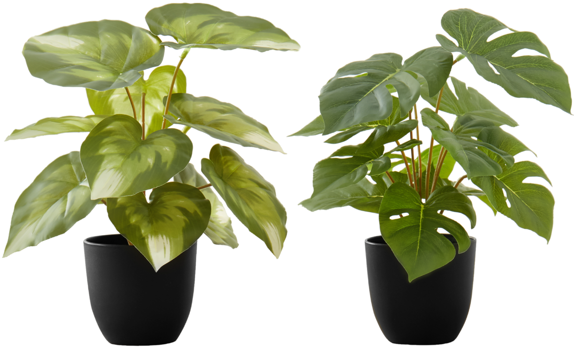 The detailed large leaves are adjustable to create the desired fullness for a realistic look. These faux plants are made with high-quality and durable materials so you can create the perfect balance of greenery to accent a tabletop for an indoor space. Best of all, they require no maintenance and no watering, making them an environmentally friendly and a no-fuss way to add nature to your home. The plants are firmly cemented in 4" plain black pots and aesthetically pleasing to place on a table without fear of water marks. This faux foliage set of 2 is the perfect decorative accent for the home or office, offering a beautiful and no-fuss way to bring the outdoors in.