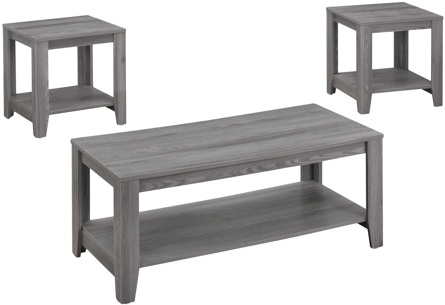 Whether you need the perfect living room table set to match your current decor style or if you're starting fresh, this is the perfect coffee table and end table trio for you. In a beautiful trendy oak grey wood finish, these living room tables offer top and bottom shelves for ample storage space so that you can sport any decorations or electronics. Made of a sturdy, thick panel construction, these tables can be placed just about anywhere in your living room, family room or basement. They are also perfect for small homes, condos or apartments.