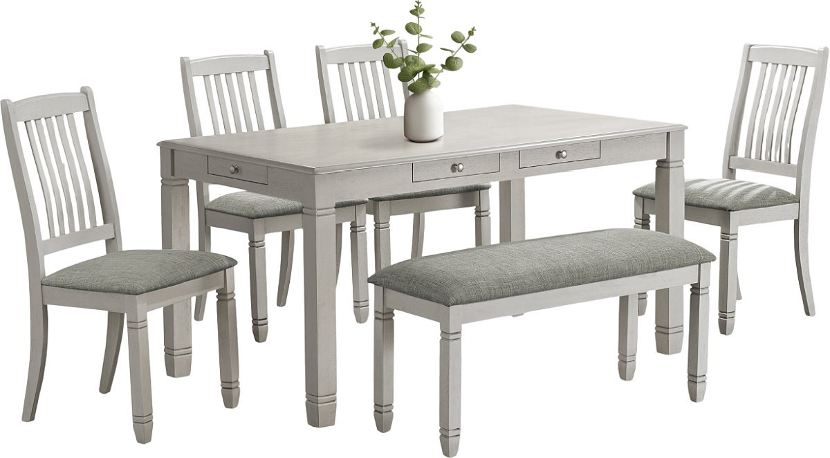 Not only is this dining table durably designed for long-lasting use, but it also comes with 6 convenient storage drawers to keep your dining essentials organized. The easy to clean top makes maintenance a breeze, while the easy assembly ensures you can start enjoying meals around this beautiful table in no time. Backed by a 2 year limited warranty, you can have peace of mind knowing that this fashionable style dining table is built to last. Easily seating up to 6, pair this table with some matching dining chairs and a bench (each sold separately) for a chic upgrade to your transitional style dining space.