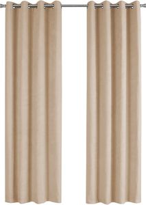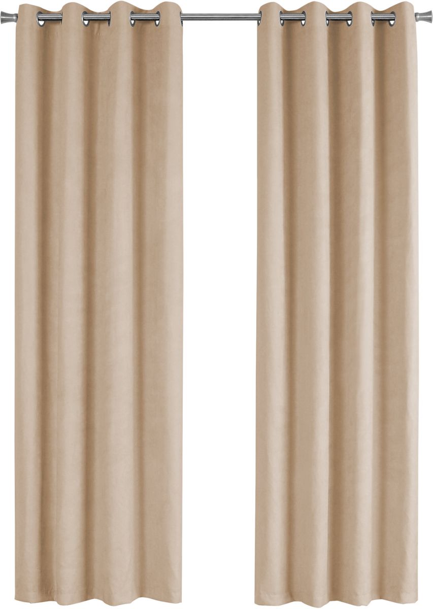 The eight silver metal grommets on each panel make it a quick setup, and the simple straight classic lines of these beige curtains are versatile enough to hang in a living room, bedroom, or dining room. Curtain rod not included and must be purchased separately.