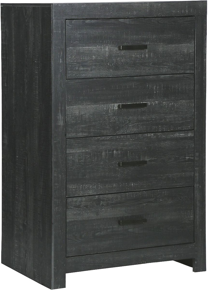 Each of the 4 drawers are meticulously finished on the inside, ensuring a refined look that reflects our attention to detail. Accessorized with sleek black metal handles, this four drawer chest not only enhances your décor but also provides plenty of storage for clothing, linens, or personal accessories. This chest of drawers arrives fully assembled for your convenience and includes a 2-year limited warranty against manufacturer defects, backing our commitment to quality. Add the matching pieces (each sold separately) to create a bedroom set that will transform your room into a sanctuary of contemporary style and sophistication.