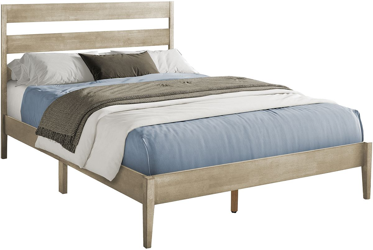Crafted for durability with 12 wood slats along the base to rest a standard size queen mattress (not included), this contemporary platform bed offers a comfortable place to unwind after a long day. The easy to assemble design makes setup a breeze with illustrated instructions and all parts included, while the 2 year limited warranty provides peace of mind against manufacturer defects. Make a statement in your modern bedroom space with this fashionable style platform bed with the chic grey wood frame! Please note this furniture piece is for the bed frame only, the mattress is not included, and a box spring is not required.