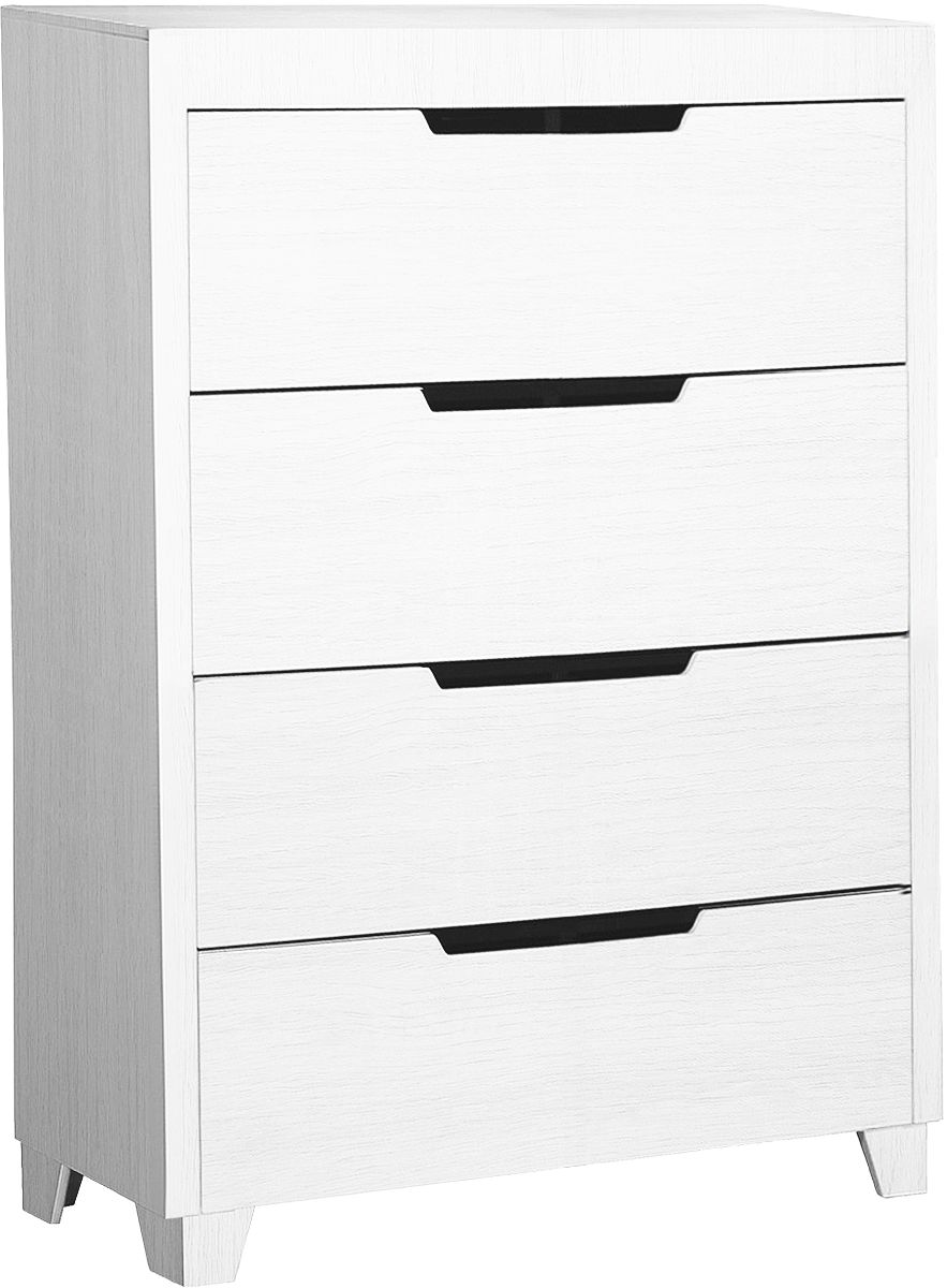This stylish and modern 4-drawer chest features an elegant white wood grain finish with cut-out handles, offers ample storage for your wardrobe essentials
