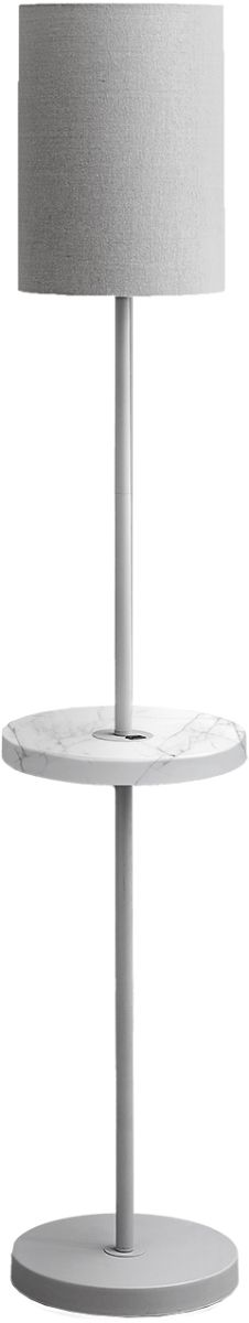 Illuminate your space with our chic and contemporary 62"H floor lamp with a convenient built-in shelf table. Crafted with sturdy grey metal with a circular metal base with a white marble-look metal shelf table, and topped with a tall drum fabric shade for a modern and luxurious look in your living room, bedroom, or office.Read More