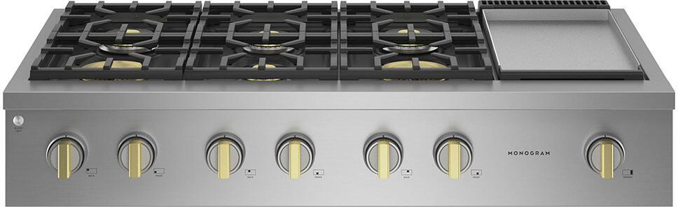 With an unmatched attention to detail, all knobs on the new Monogram Pro ranges and range tops come with solid brass accents