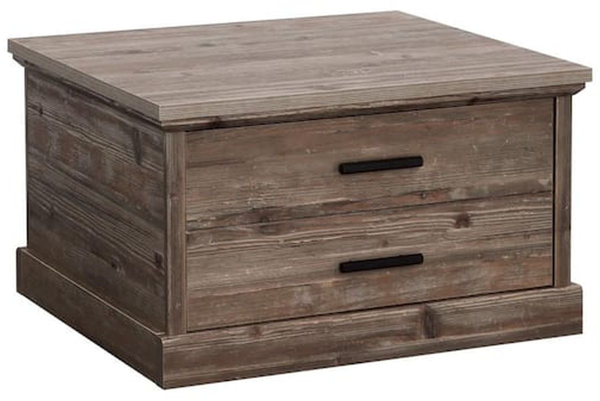 The cool and neutral Pebble Pine® finish of this storage coffee table from the Aspen Post® collection will bring the feel of a rustic, mountainside resort directly into your living room, den, or family room. This coffee table with drawer features a durable and expansive surface for playing board games, coloring, snacking, and more.Read More