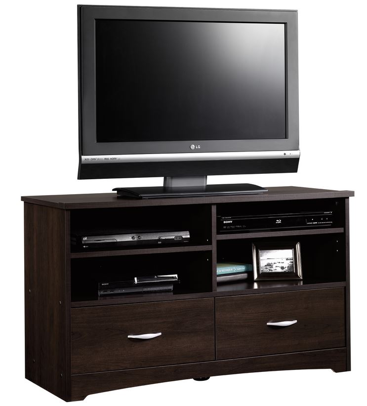 It accommodates up to a 46” TV, making it perfect for binge-watching your favorite show. Finished in Cinnamon Cherry, this stand features two drawers that open and close on smooth metal runners and two adjustable shelves to hold all your video and gaming equipment.Read More