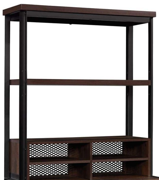 Hutches allow you to expand the furniture you already know and love by providing extra storage shelves -- perfect for books, binders, folders, home décor, or photos of your family. One large adjustable shelf allows for versatile display options to accommodate items of various sizes. Small cubby organizers allow this library bookcase to provide more office storage for printer paper, your planner, mail, and more. Finished in Barrel Oak™ with a powder-coated metal frame, this library hutch is an easy, and affordable, way to add more storage space to your home office or workspace items.