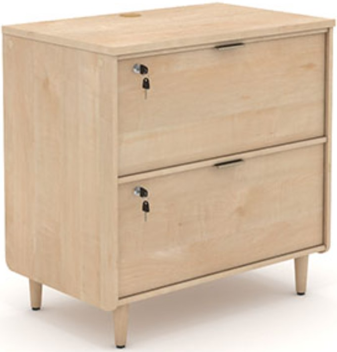 Each drawer accommodates letter or legal size hanging files so you can keep all your important files and papers organized and easily accessible. This 2-drawer file cabinet also includes an interlocking safety mechanism that only allows one drawer to open at a time. No need to worry about the security of your files: the drawers on this wood lateral file cabinet lock for secure storage. A grommet hole and pass-through for cord management keeps wiring neatly organized and allows for convenient charging of your laptop, displaying a lamp, and more. Finished in a Natural Maple finish and accented with solid wood feet, this legal size file cabinet adds style and functionality to your home office or workspace.