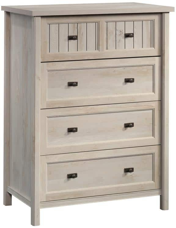 Are you running out of storage space in your bedroom? Does your existing bedroom furniture need help? No worries. We’ve got just what you need. Create the additional storage space you need while adding the style that you love with this 4-drawer chest from the Costa collection. This 4-drawer dresser has room for it all! The top drawer of this bedroom furniture features framed, slat-front detailing that stands out from other bland dressers. Putting together your new furniture is a breeze because this wood chest of drawers was designed with a T-lock drawer system and slide-on moldings that make assembly quick and easy. Finished in Chalked Chestnut® and detailed with attractive hardware, this bedroom dresser is the solution to your storage woes.