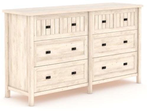Never run out of bedroom storage space again! Create versatile storage while adding beautiful style to your bedroom with this dresser from the Costa collection. This bedroom dresser features six large drawers that open and close on smooth metal runners and safety stops to create an easy access spot to stow away items. Two drawers of this double dresser features unique framed, slat-front detailing. Quick and easy assembly with a T-lock drawer system ensures that your wood dresser will be ready to use in no time. Finished in Chalked Chestnut®, this dresser with drawers gives you excessive storage and modern design all in one.
