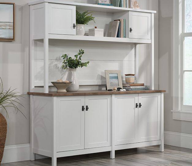 This bundled set, an office credenza with hutch from the Cottage Road® collection, solves the office storage dilemma with a touch of quaint, cottage style. Finished in white with a Lintel Oak® accented, 1” thick work surface, this office storage credenza is finished on all sides for versatile placement anywhere.Read More