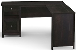 A home desk is used for more than just work from home activities—making grocery lists, art projects, and more all happen at a home desk. Do all these undertakings and more, with the stylish and functional L-shaped desk from the County Line® collection. A spacious top surface accommodates a computer, binders, and photos of your loved ones—this home office desk has room for it all! This L-shaped computer desk includes a file drawer with full extension slides that holds letter-size hanging files to keep your documents organized. To store your pens, stapler and notecards, this desk with file drawer includes a smaller drawer with metal runners and safety stops. An open shelf for additional storage allows you to display items like books, home décor, or other trinkets. This small office desk is finished on all sides so it will look polished no matter how you arrange it in your home. A cord management system with two desktop grommets keeps your workspace free of cord clutter. Finally, a quick and easy assembly process aided by patented T-slot drawer system and patented slide-on molding allows you to assemble your new L-shaped desk in a breeze. Finished in Estate Black ®, this L-shaped home office desk adds the right amount of space and style to any home office.