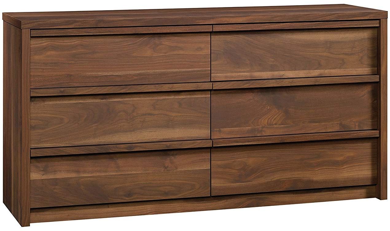Dress up your bedroom décor with this dresser from the Harvey Park collection. Find space for your wardrobe in one of the six drawers that open and close on smooth metal runners. Finished in Grand Walnut, this stylish dresser will class up your bedroom in no time.