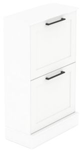 Two tilt-out doors conceal shoe storage compartments
