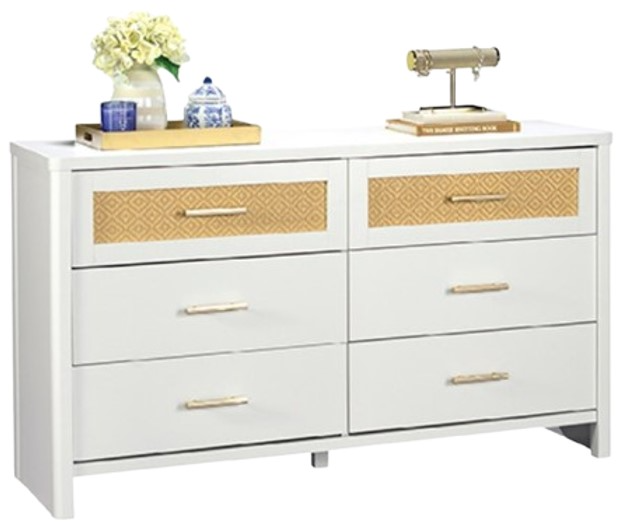Transform any living space into a serene, coastal retreat with a modern bedroom dresser from the Isabella Isle™ collection. With a durable, 1-inch-thick top, this white chest of drawers will offer a spacious surface for anything from cosmetics to coffee bar supplies.Read More