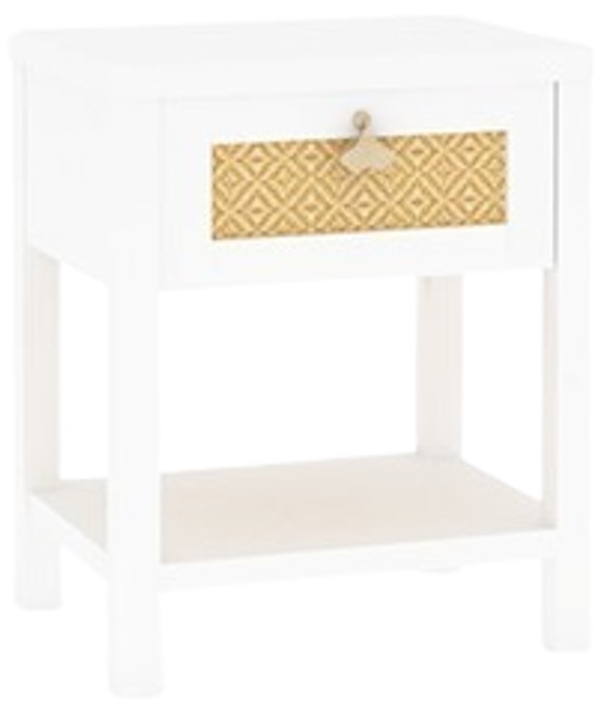 With a white finish that evokes the tranquility and charm of a bright, sunny day at the beach, the tropical-inspired single-drawer nightstand from the Isabella Isle™ collection is a vacation from the ordinary. Nautical-inspired hardware adds character and charm while a sandy-colored rattan insert on the drawer front gives an island inspiration.Read More