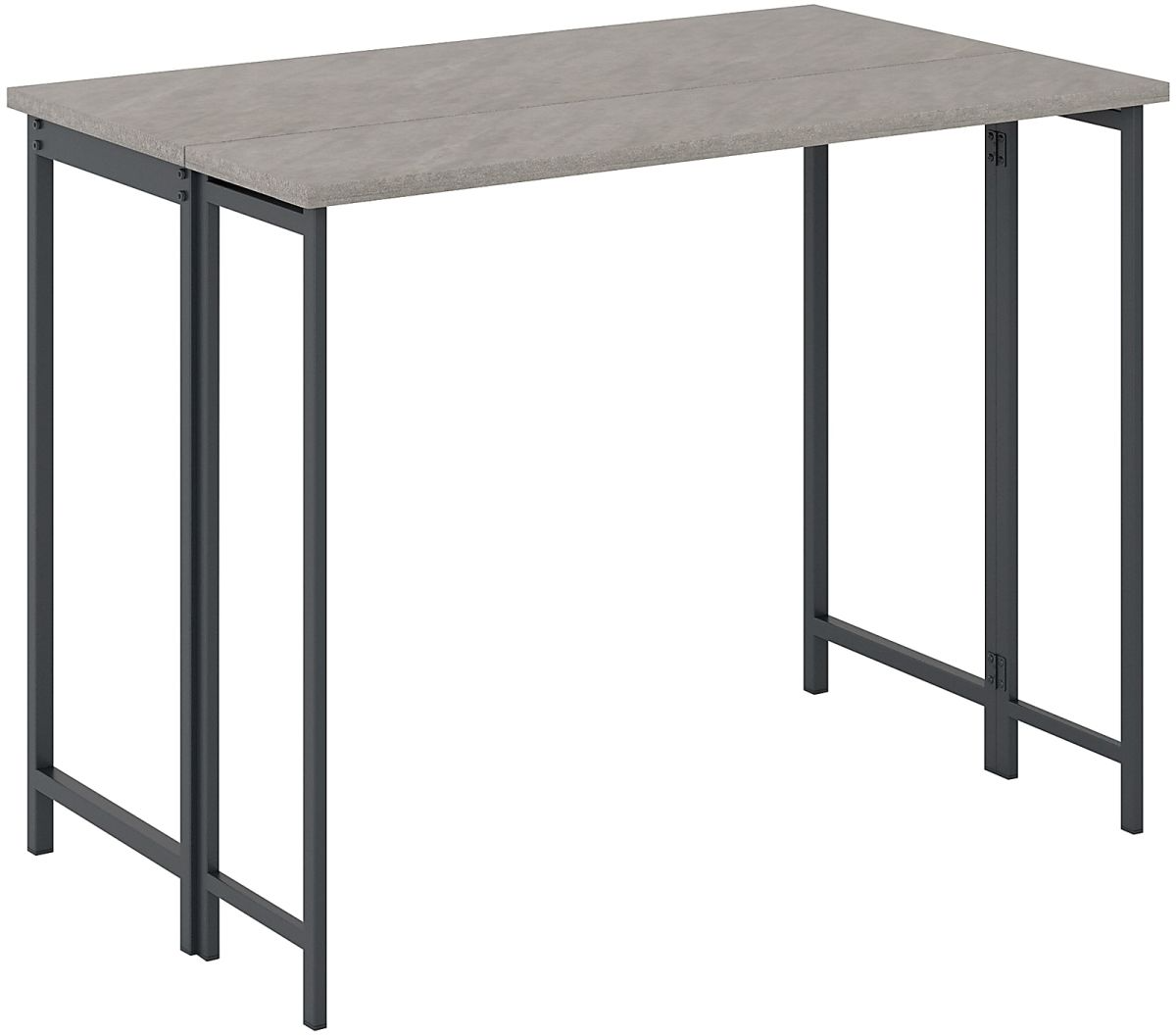 The best feature of drop leaf dining tables is the flip-up tabletop extension with slide-out supports to provide you with that extra table space you need for a large puzzle, table placements for extra guests, and more. This table with leaf features a durable, black metal frame for added durability and design. Finished in Faux Concrete, this small drop leaf table gives your home an industrial charm. We hope you like what you see. Sauder designers travel the world and bring back the best and latest in style, finish, and color trends. This inspiring world travel is evident in the cutting edge and innovative furniture solutions we offer to you!