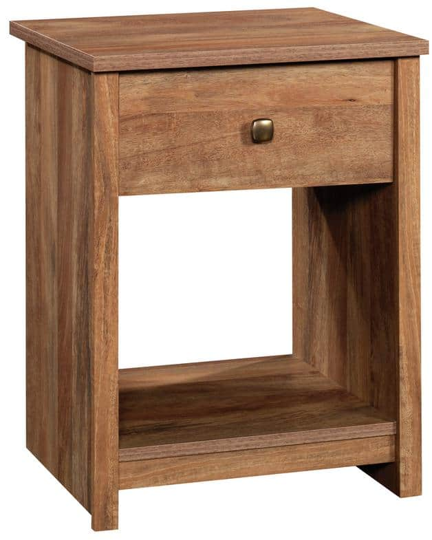 Upgrade your bedside storage with this nightstand from the River Ranch™ collection. For optimal charging capabilities, upgrade your farmhouse nightstand with the optional Hidden Wireless Qi Compatible Charger by Eggtronics 425905 (sold separately – visit sauder.com for more information). Your new bedside table with drawer is finished on all sides for versatile placement around the home—it will look polished and complete from every angle. The bedside table with storage features a T-slot drawer system and slide-on moldings that makes for an easy assembly process. Finished in a warm Sindoori Mango®, this nightstand will fit seamlessly into any bedroom.