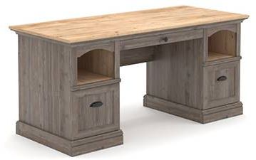 When country comes to town, it looks like the charming, executive pedestal desk from the Sonnet Springs™ collection. The quaint, cottage style construction and natural woodgrain of this double pedestal desk combine with sophisticated draped arches and framed drawer fronts to bring a rustic elegance to any office space.Read More