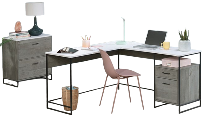 This bundle set includes L-Shaped Desk 433237 and Lateral File 433238