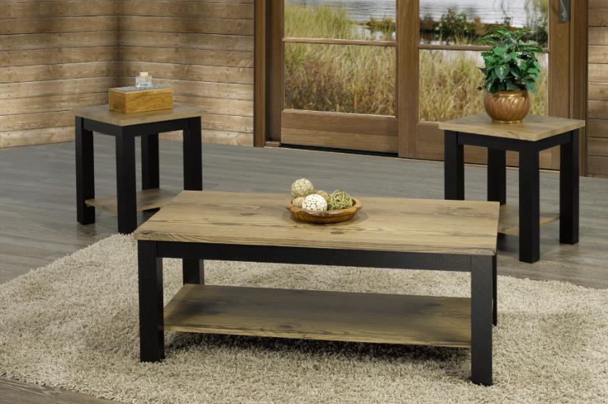Rectangular tabletop shape for a coffee table and square tabletop shape for end tables