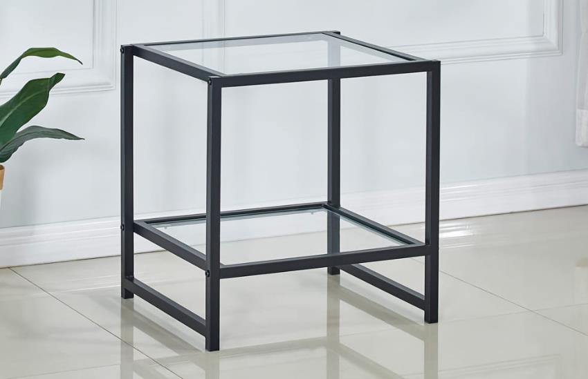 With a simple design, this glass top nightstand fits most design plans without distracting from other pieces. Sturdy metal frame with glass tabletop and shelf. Make a bold statement by incorporating this stunning furniture into your home.Read More