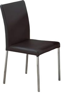 The contemporary dining chairs include black leatherette seating with chrome finish metal legs.Read More