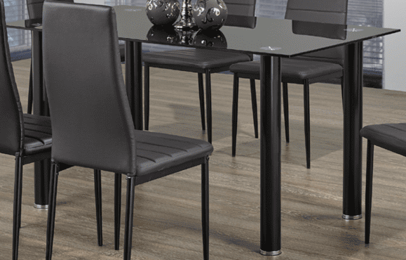 A classic, simple and affordable dining table featuring black tempered glass and legs,Read More