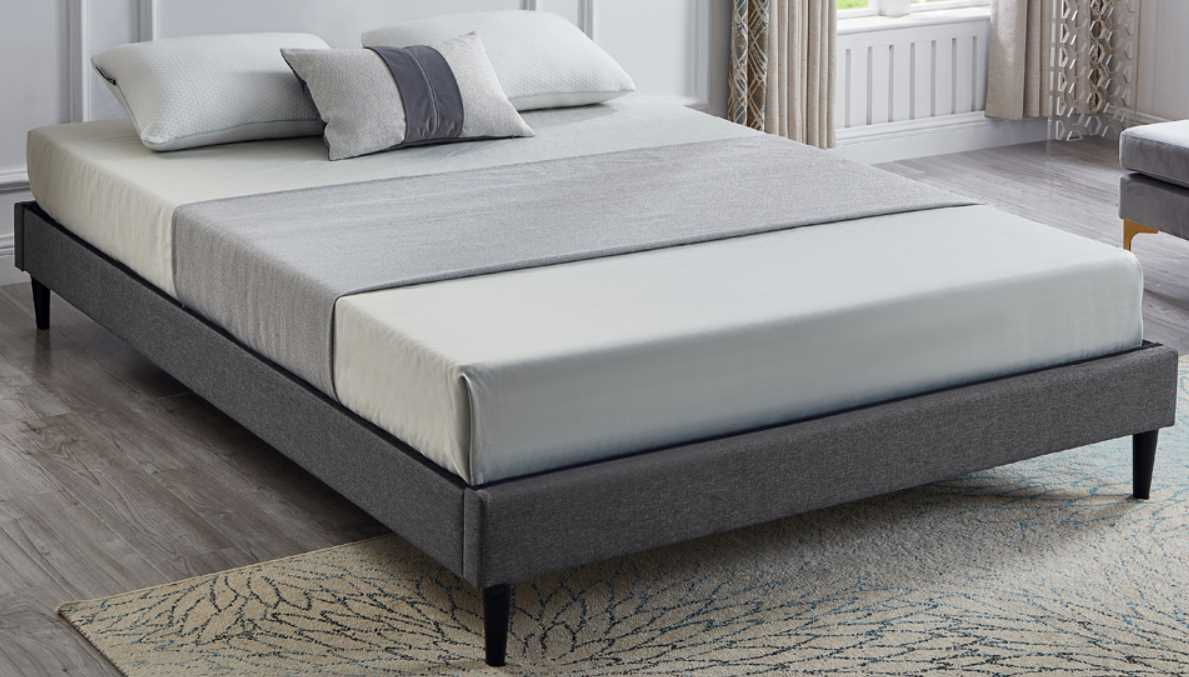 This sturdy, low-profile sleeping space offers great value in a unique, contemporary style. A slat cover is included to protect and reinforce the mattress. Grey linen fabric trim. Make a bold statement by incorporating this stunning furniture into your home.Read More