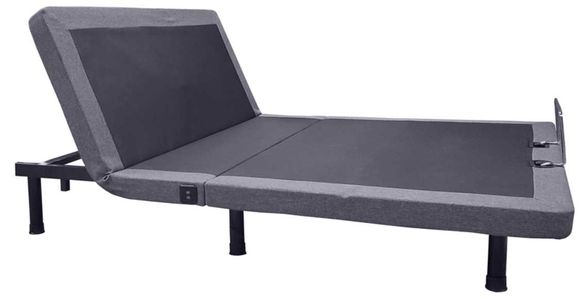 Full power adjustable bed includes a wireless remote with a flashlight, and adjustable legs, and is built with a plywood deck, polyester wadding, and anti-skid fabric. Full metal, reinforced frame. Separate modes smoothly and quietly raise head and feet positions.Read More