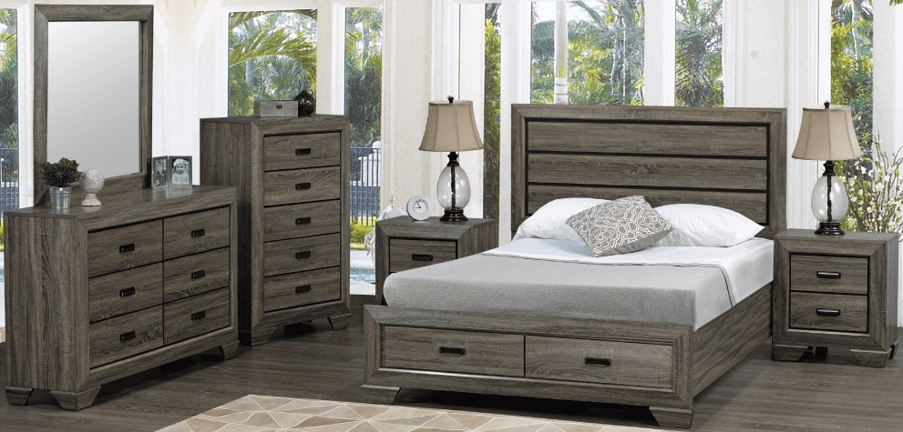 Elevate style and function with the captivating Jenna Bedroom Set. Experience contemporary mastery with its two-footboard storage drawers and hardware-less case goods. Adorned in a distressed grey finish, this set exudes modern allure. Complete with slats, no box spring is needed. Unleash the perfect blend of convenience and aesthetics with the Jenna Bedroom Set.Read More