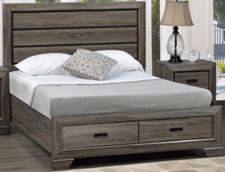Elevate style and function with the captivating Jenna Bed. Experience contemporary mastery with its two-footboard storage drawers. Adorned in a distressed grey finish, this s exudes modern allure. Complete with slats, no box spring is needed. Unleash the perfect blend of convenience and aesthetics with the Jenna Bed.Read More