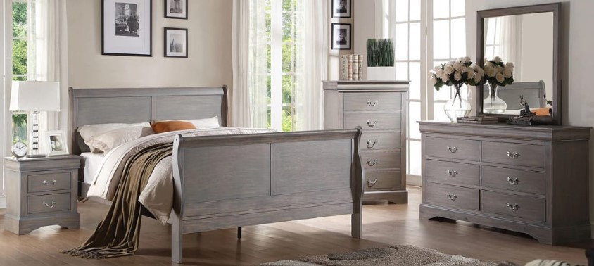 This Louis Phillippe Bedroom Set is beautifully crafted to create a rich and gorgeous bedroom. The gentle curving of the sleigh bed compliments the solid wood construction. Coated in a grey finish, this Louis Philippe set is a splendid package that brings both elegance and charm to your bedroom.Read More