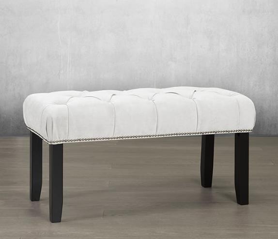 The perfect accent piece for the bedroom, living room, or anywhere you want to add a bit of flair. Handcrafted, this bench includes deep tufting with your choice of buttons or crystals, nailhead trim, and wood legs.Read More